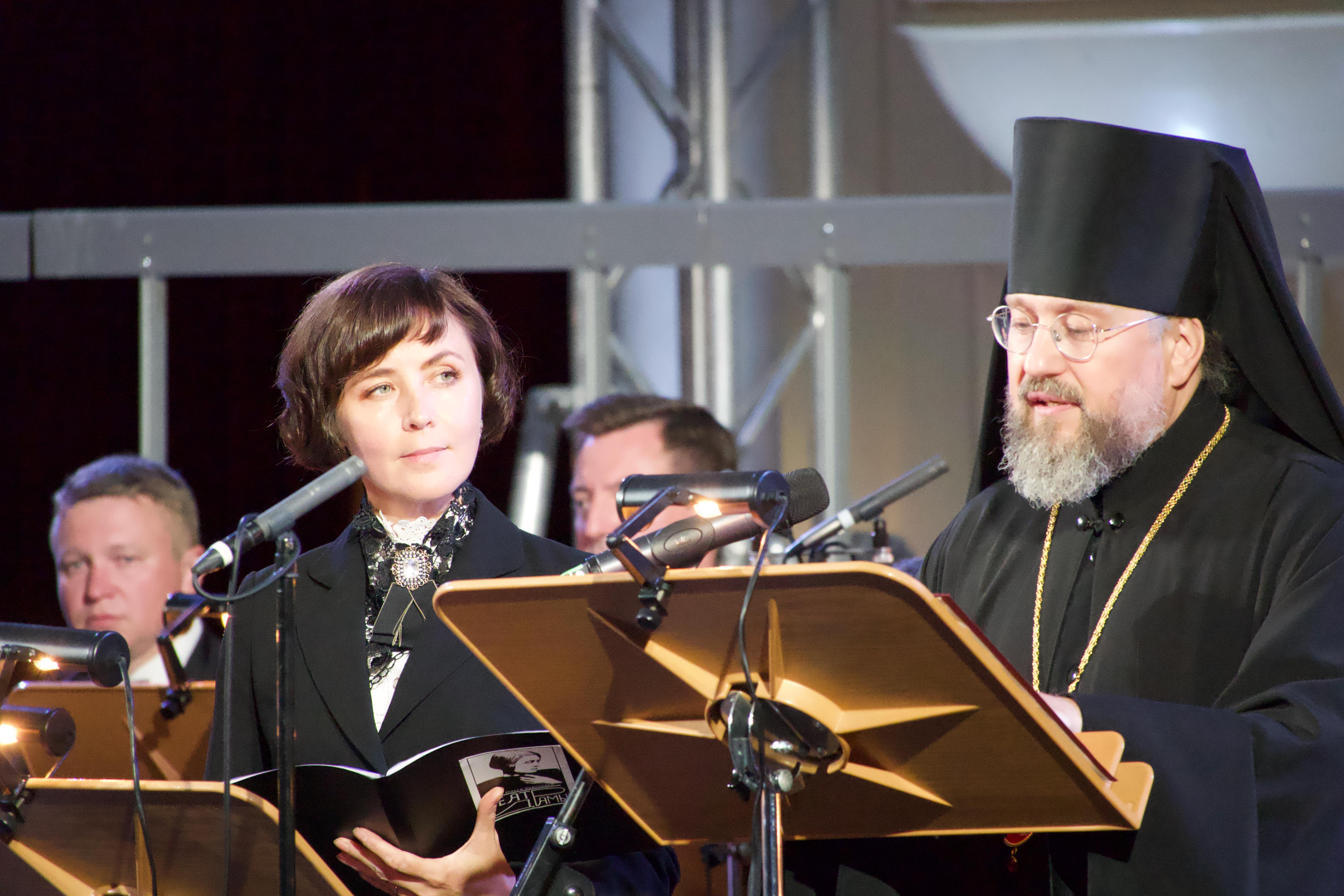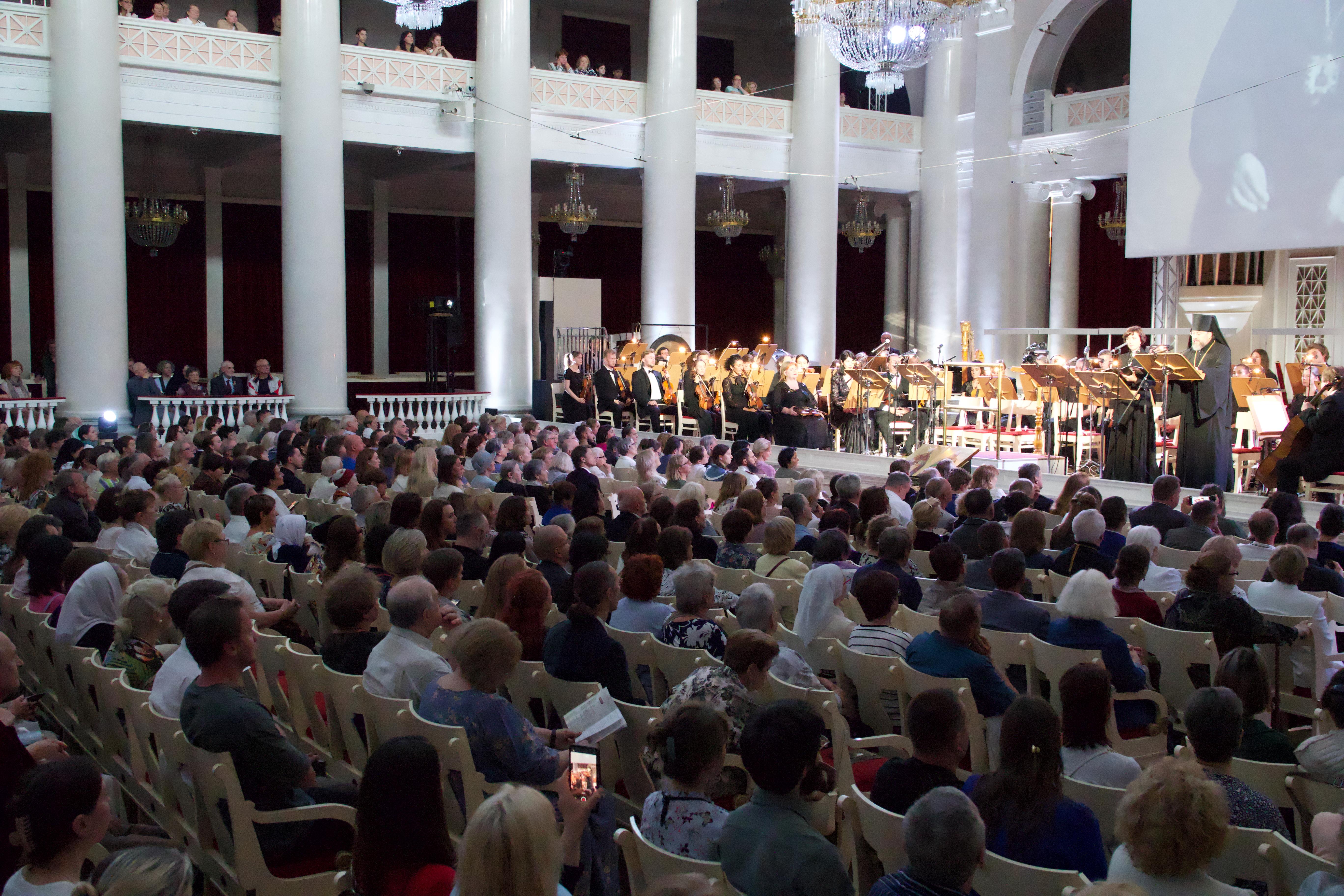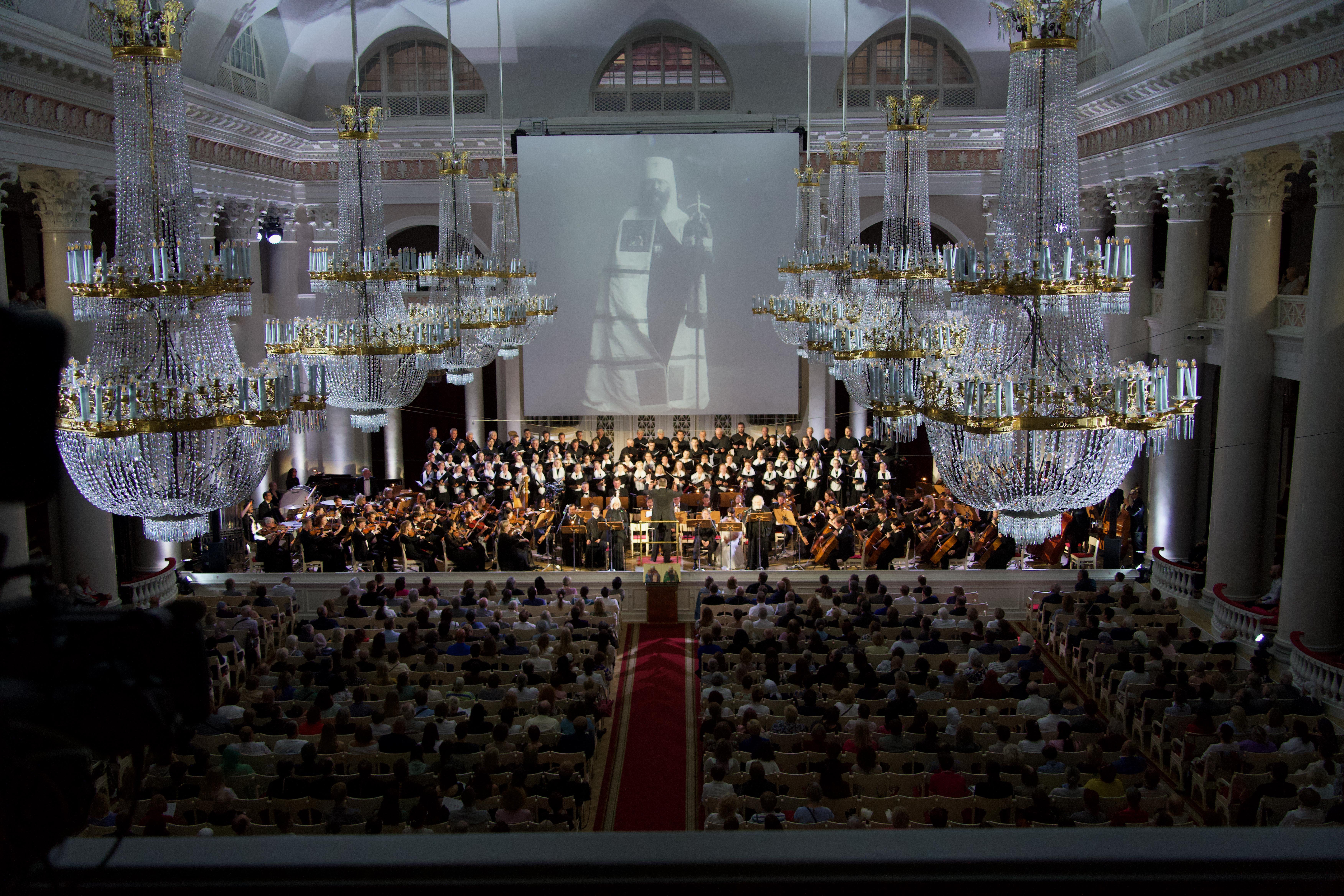 Перед началом мероприятия архиереями Русской Православной Церкви (епископ Кронштадтский Вениамин, митрополит Волгоградский и Камышинский Феодор, епископ Урюпинский и Новоаннинский Елисей, митрополит Екатеринбургский и Верхотурский Евгений и епископ Череповецкий и Белозерский Игнатий) была возложена корзина с цветами к памятной доске, которая 4 года назад была установлена в Большом зале петербургской Филармонии.